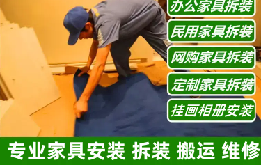 1、新家具安装 :网购家具安装 衣柜安装 床安装 儿童床安装 梳妆台安装 组合书柜安装 书桌安装 酒柜安装 吧台安装 餐桌椅安装 斗柜安装 电视柜安装 茶几安装 吊柜安装 茶水柜安装 鞋柜安装 会议椅安装 餐边柜安装 橱柜安装 屏风隔断组合安装 办公桌安装 大班台安装 会议桌安装 密集柜安装 高隔墙安装等家具安装。